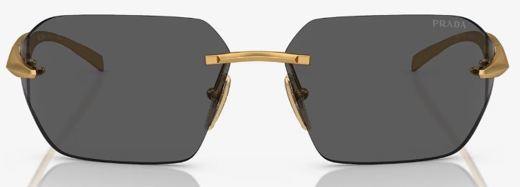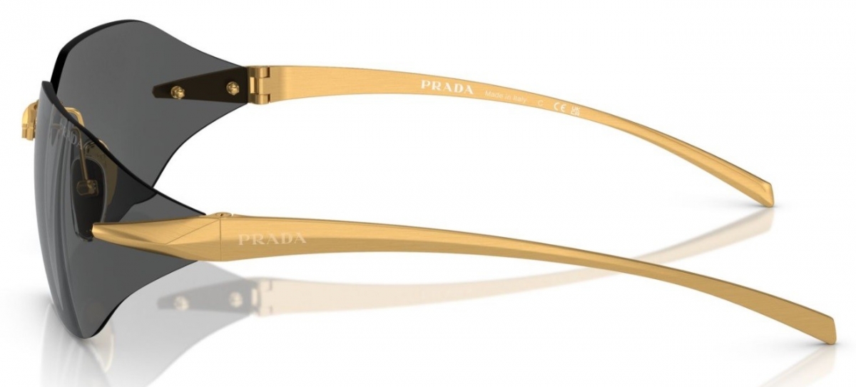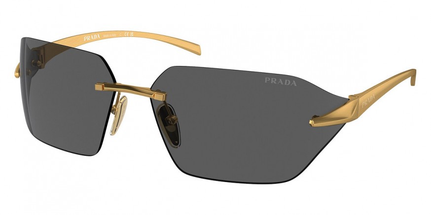 O modelo Prada SPR A55 é um óculos de sol unissex que combina sofisticação e design contemporâneo. Com armação em metal dourado fosco e lentes cinza ou marrom, oferece um visual elegante e moderno.